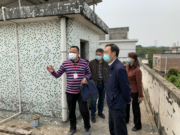 广医在线讯 2020年是脱贫攻坚决战决胜、全面收官之年。为巩固扶贫成果,打好精准扶贫精准脱贫攻坚战,4月10日,由学校纪委书记周国清带队,学校工会副主席、扶贫办主任冯卫东,纪委副书记程东海,学校机关第二党总支书记周如建,审计处副处长戚永忠,纪检监察室副主任翁永明,附属第五医院纪委书记吴璧锋,扶贫办林渺泉老师一行到访学校定点扶贫单位——清远市佛冈县汤塘镇高岭村开展脱贫攻坚监督检查工作暨调研慰问活动。汤塘镇党委委员朱光蔡、高岭村驻村干部和村两委干部等陪同检查和调研慰问。