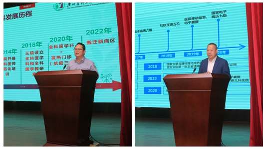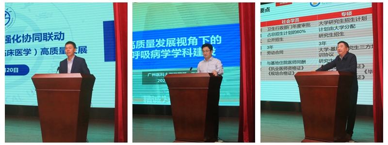 学校发展规划处、附属第一医院、附属第二医院、附属第三医院、附属妇女儿童医疗中心分别以“‘双一流’大学学科建设”“高质量发展视角下的呼吸病学学科建设”“高质量发展视角下的住培基地建设”“全科医学学科建设与发展”“‘三位一体’的智慧医院建设”为题作专题工作报告。
