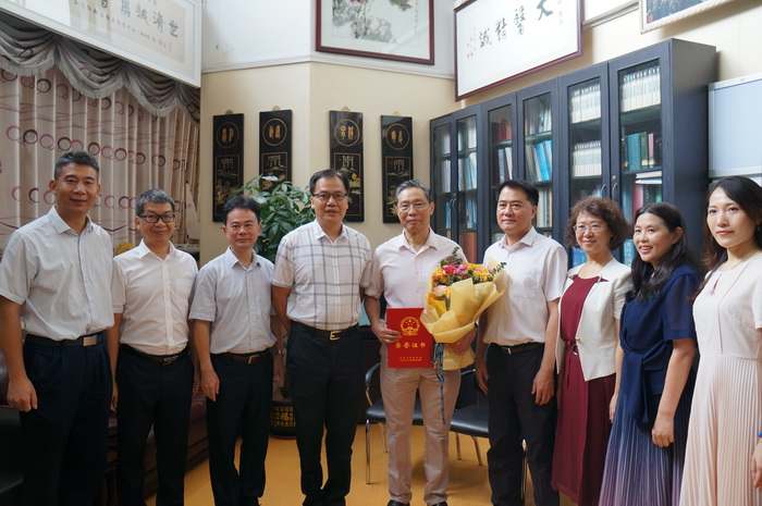 校长王新华、副校长黄健清一行来到附属第一医院看望刚刚荣获“共和国勋章”的钟南山院士,并为钟院士送上中宣部、教育部联合颁发的“全国教书育人楷模”荣誉证书。黄健清副校长一行走访国家重点实验室看望教师,副校长赵醒村一行到公共卫生学院、药学院走访慰问教师代表,并进行座谈。