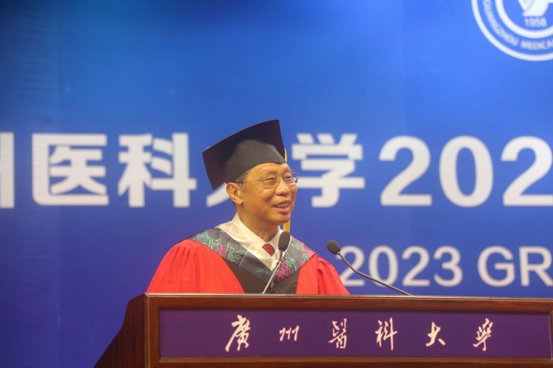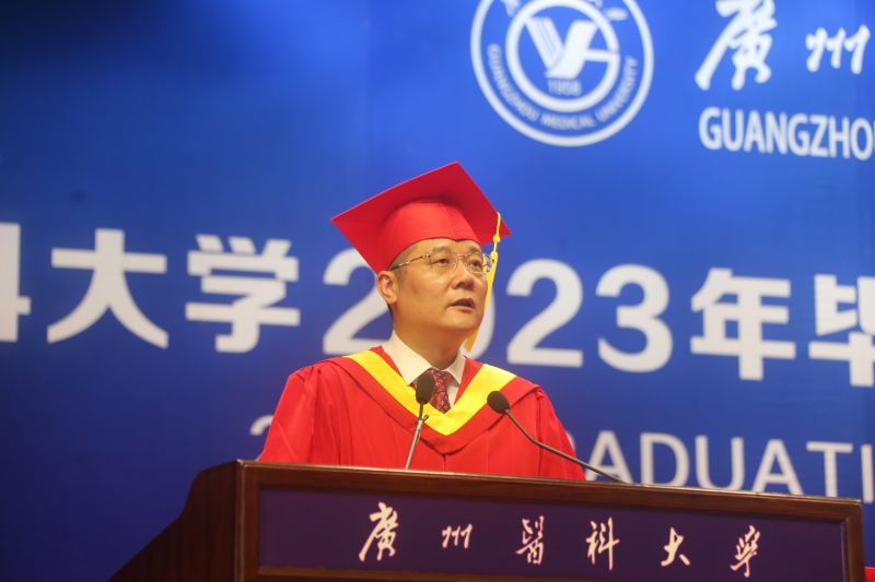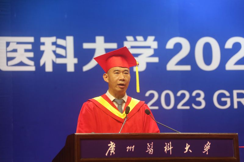 在研究生毕业典礼上,他表示,毕业生们是广医发展的见证者与贡献者:同学们在抗疫期间用实际行动践行医者誓言;在科研道路上潜心钻研,书写了广医后浪硬核的学术实力;在各种文体活动中竞展风采,取得优异成绩。最后,他对毕业生们提出祝愿与期望:
