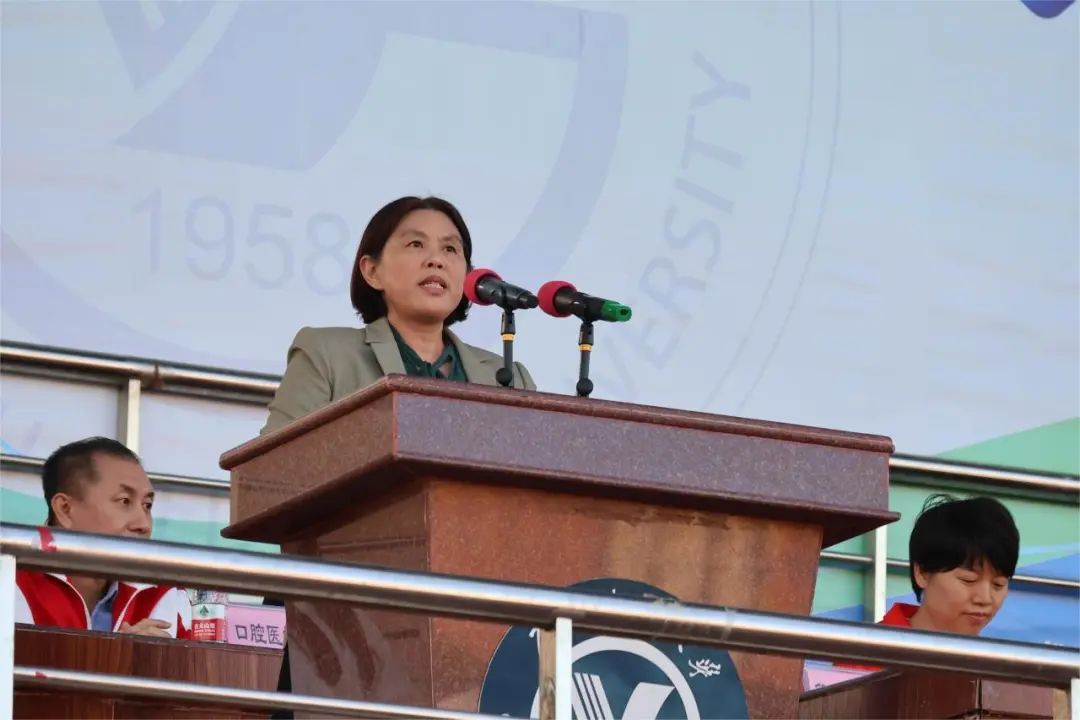 唐小平书记在致辞中表示,本届运动会是新冠疫情过后的第一次校运会,也是学校建校65周年系列重要活动之一。校运会为学校65岁华诞营造了青春活力氛围,充分展现了广医人积极向上、奋勇拼搏的精神风貌以及学校体育事业蓬勃发展、学生体育素质持续提升的良好态势。希望广大师生把在运动场上所展现的顽强拼搏、永不放弃、团结友爱的精神,延伸到今后的学习生活中。以不懈的努力、饱满的热情、昂扬的斗志投入学校改革发展事业中,为高质量推进“双一流”建设贡献青春力量。