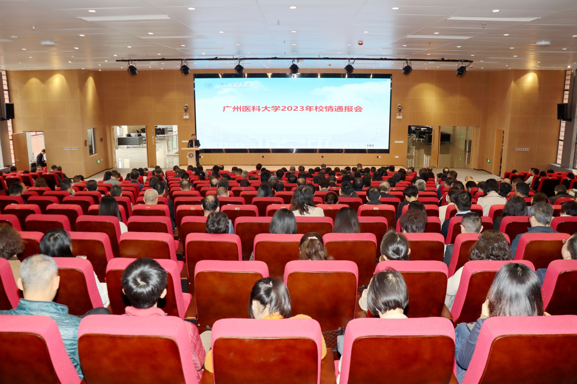 1月11日,学校2023年校情通报会于番禺校区学术交流中心召开,共同回顾过去一年的工作情况,谋划新一年的发展。会议由学校党委书记唐小平主持。