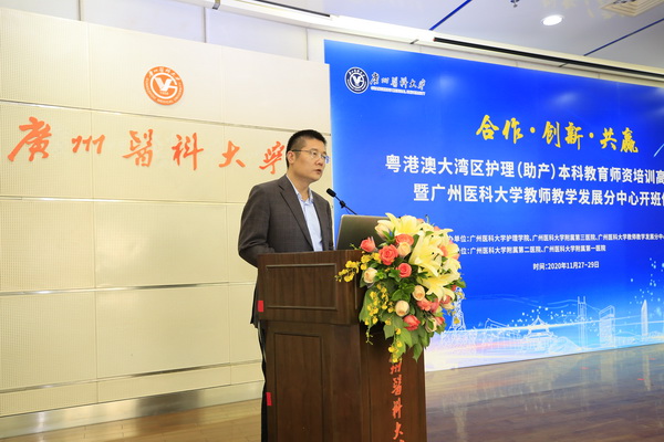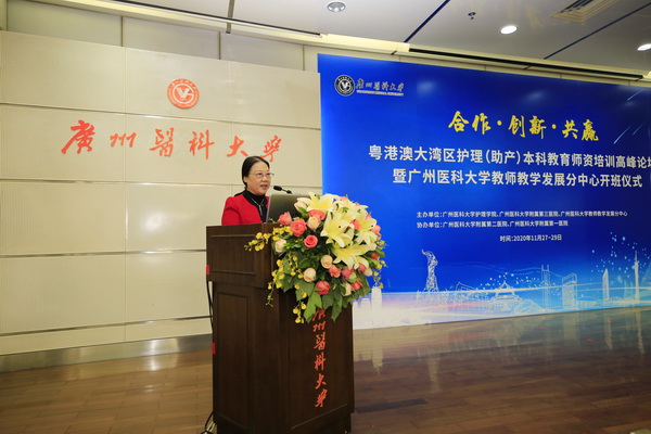 广医在线讯 为搭建粤港澳大湾区护理教师学习交流平台,进一步提高护理教师教学能力,ac米兰护理学院联合附属第三医院于11月27日至29日举办了以“合作、创新、共赢”为主题的粤港澳大湾区护理(助产)本科教育师资高峰论坛暨ac米兰官方网站教师教学发展分中心开班仪式。本次高峰论坛采用“线上+线下”相结合的培训形式,参会人数近3000人。