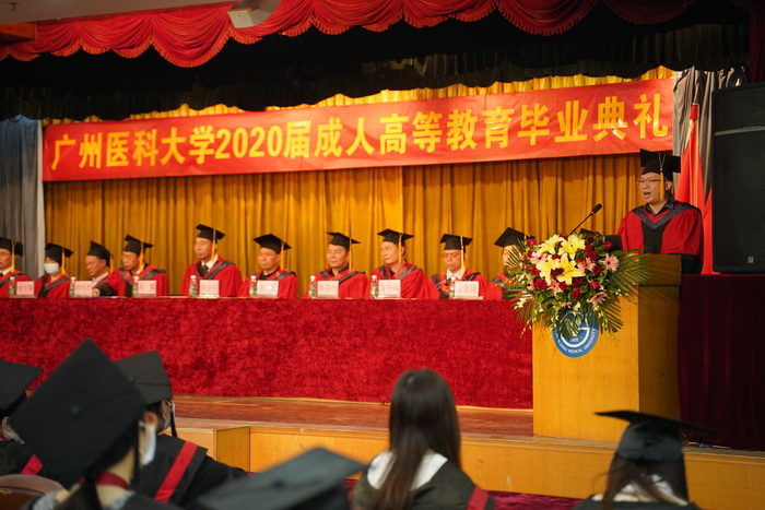 广医在线讯 12月26日上午,学校在越秀校区举行2020届成人高等教育毕业典礼。学校副校长胡丙杰、相关职能部门及学院负责人出席典礼。典礼由全科医学与继续教育学院院长纪泽泉主持。2020届成人教育毕业生通过现场及线上的方式参加了典礼。