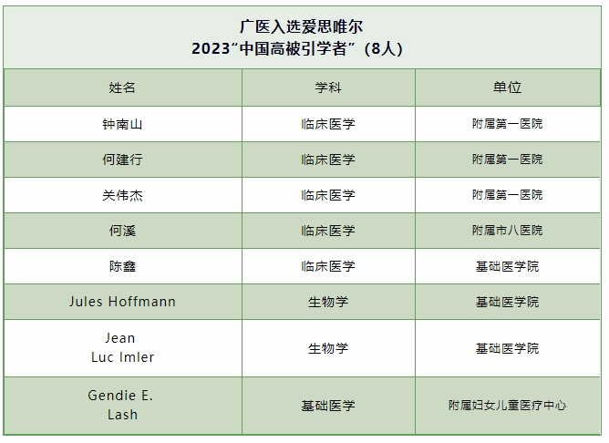 近日,爱思唯尔(Elsevier)发布了2023“中国高被引学者”(Highly Cited Chinese Researchers)榜单,ac米兰官方网站共有8位学者上榜,较2022年度新增3人,来自医学与理学两个学科领域,分布在临床医学、基础医学及生物学三个一级学科。