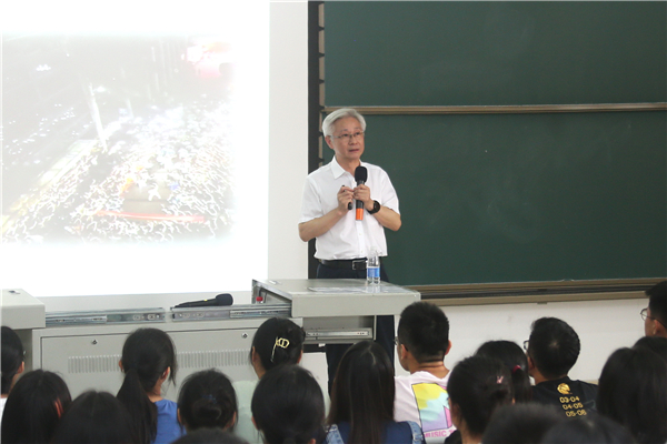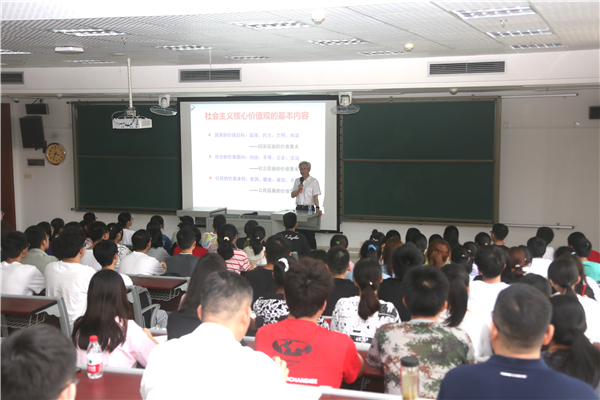 他谈到,社会主义核心价值观包含了国家、社会和公民层面的价值要求,为实现中华民族伟大复兴的中国梦提供价值支撑,为协调推进“四个全面”战略布局提供精神动力,为引导同学们进德修业成长成才提供根本指针。