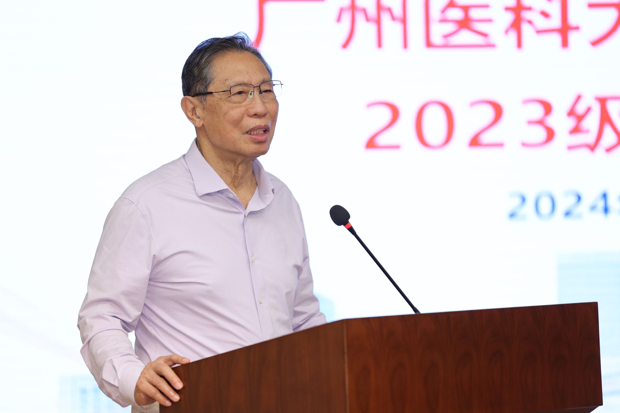 校长赵醒村对加入南山班的2023级40位学子表示欢迎,对钟南山院士以及各位老师表达敬意,并从南山班的建立初衷、历史沿革、教育教学改革以及育人成效等方面进行介绍。他对2023级南山学子提出三点要求:一是要担当奉献,永葆家国情怀;二是要创新精进,勇攀医学高峰;三是要提高涵养品德,永怀医者仁心。他希望同学们不负伟大时代、不负青春韶华,在民族复兴的伟大征程中贡献自己的青春力量,让青春在全面建设社会主义现代化国家的火热实践中绽放绚丽之花。