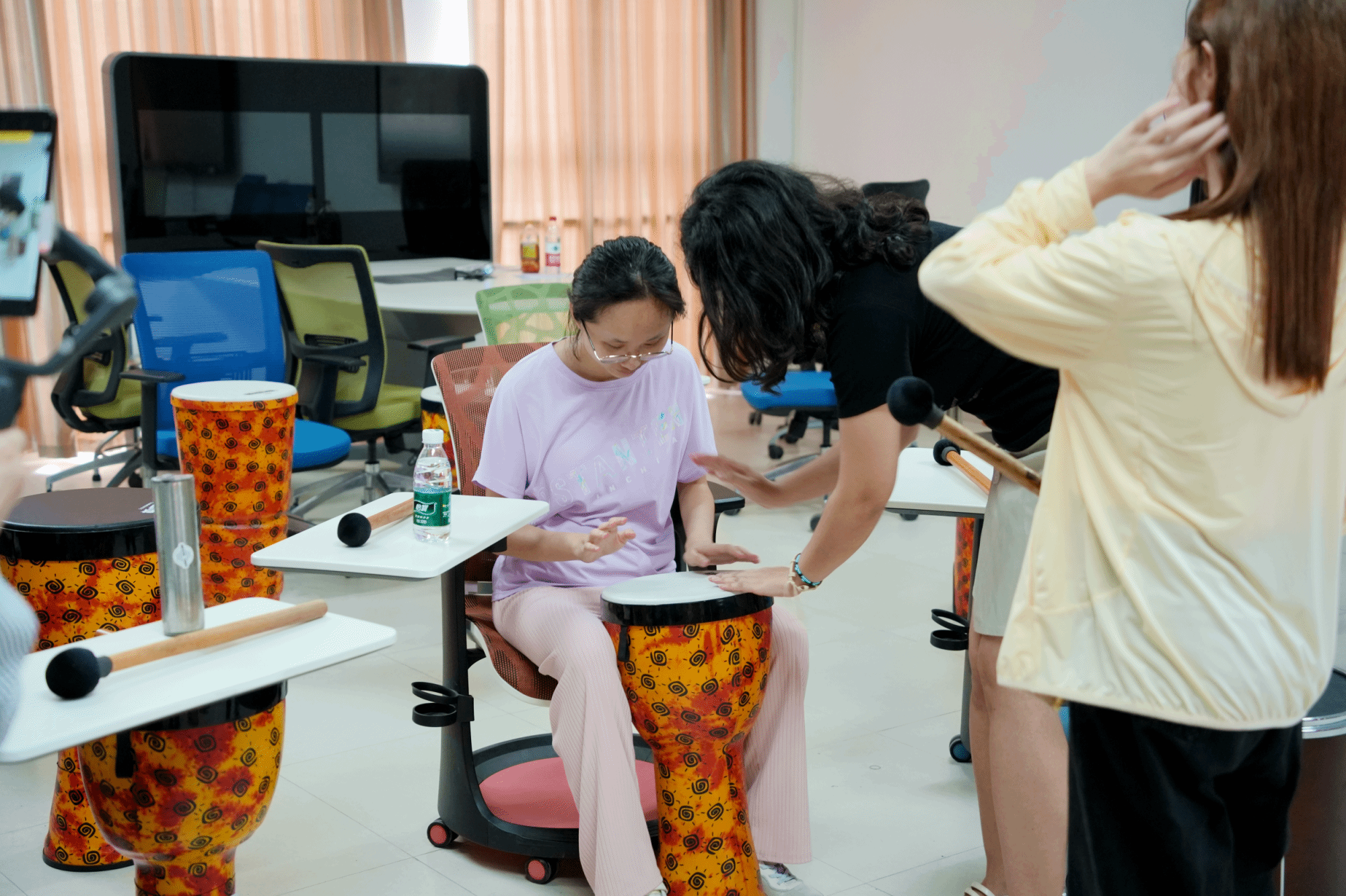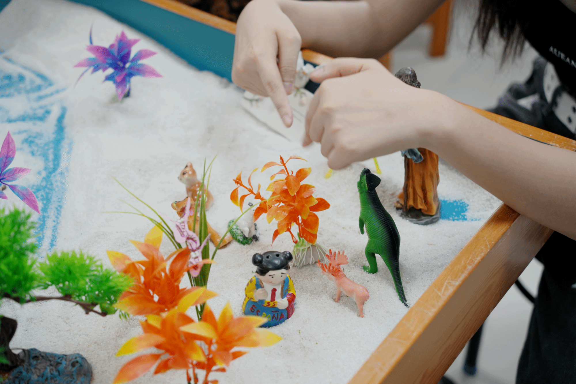 除了聆听讲座以外,考生和家长还参与到急救技能培训、音乐疗法、沙盘游戏等活动中。