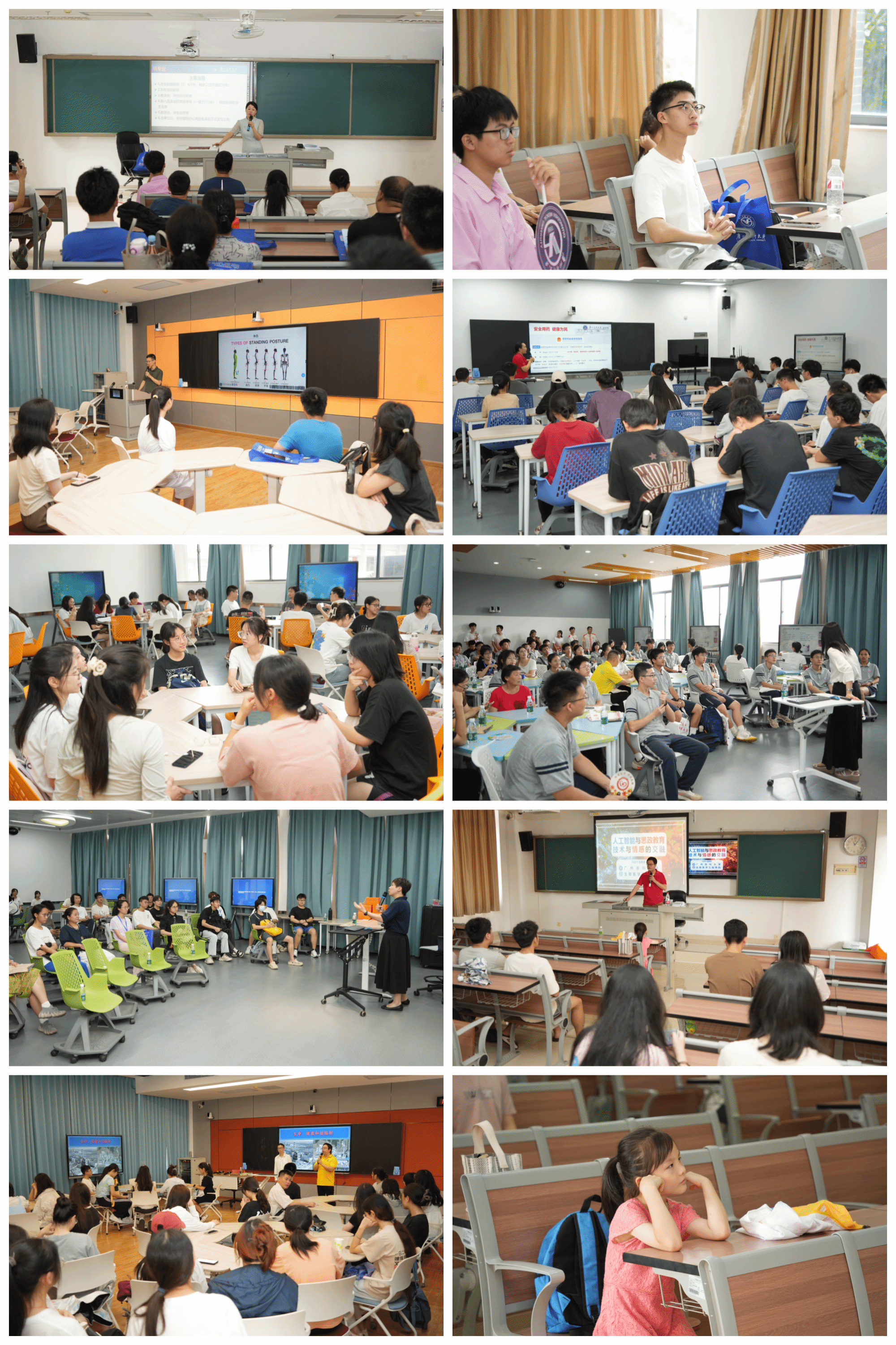 在博学楼、厚德楼、人体解剖楼、礼堂等,学校全天安排了招生政策宣讲、科普讲座、体验活动一共20多场。