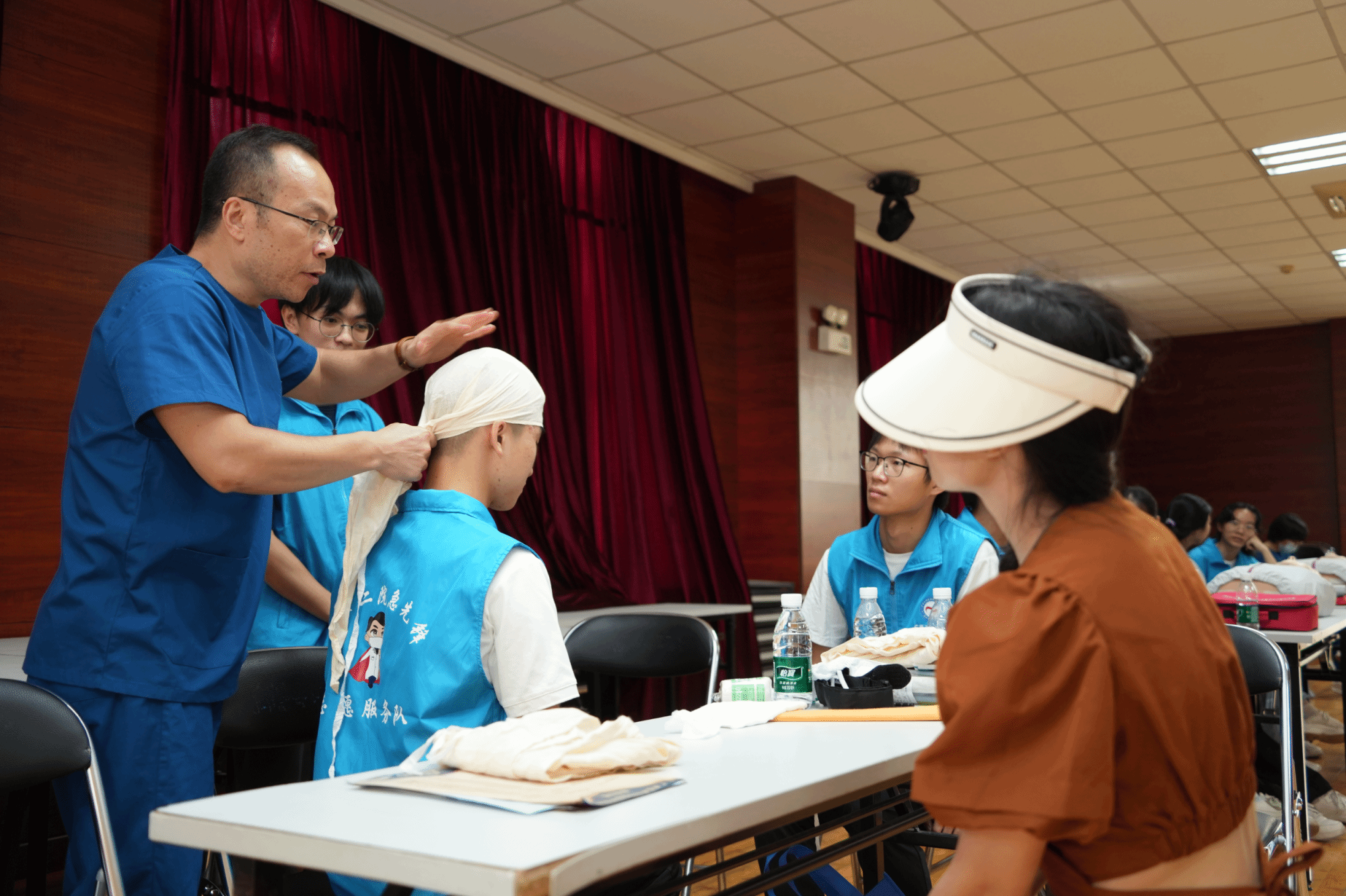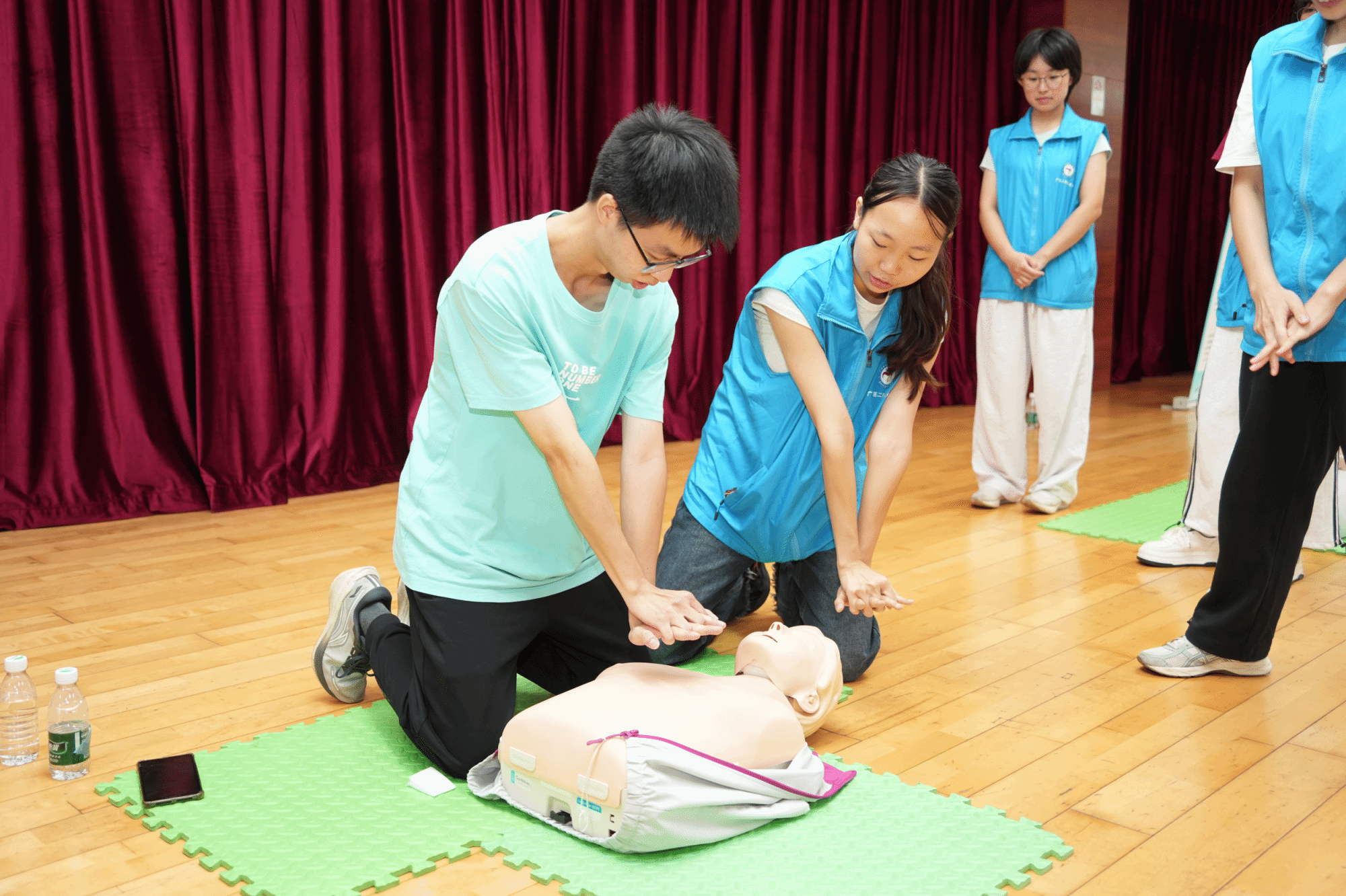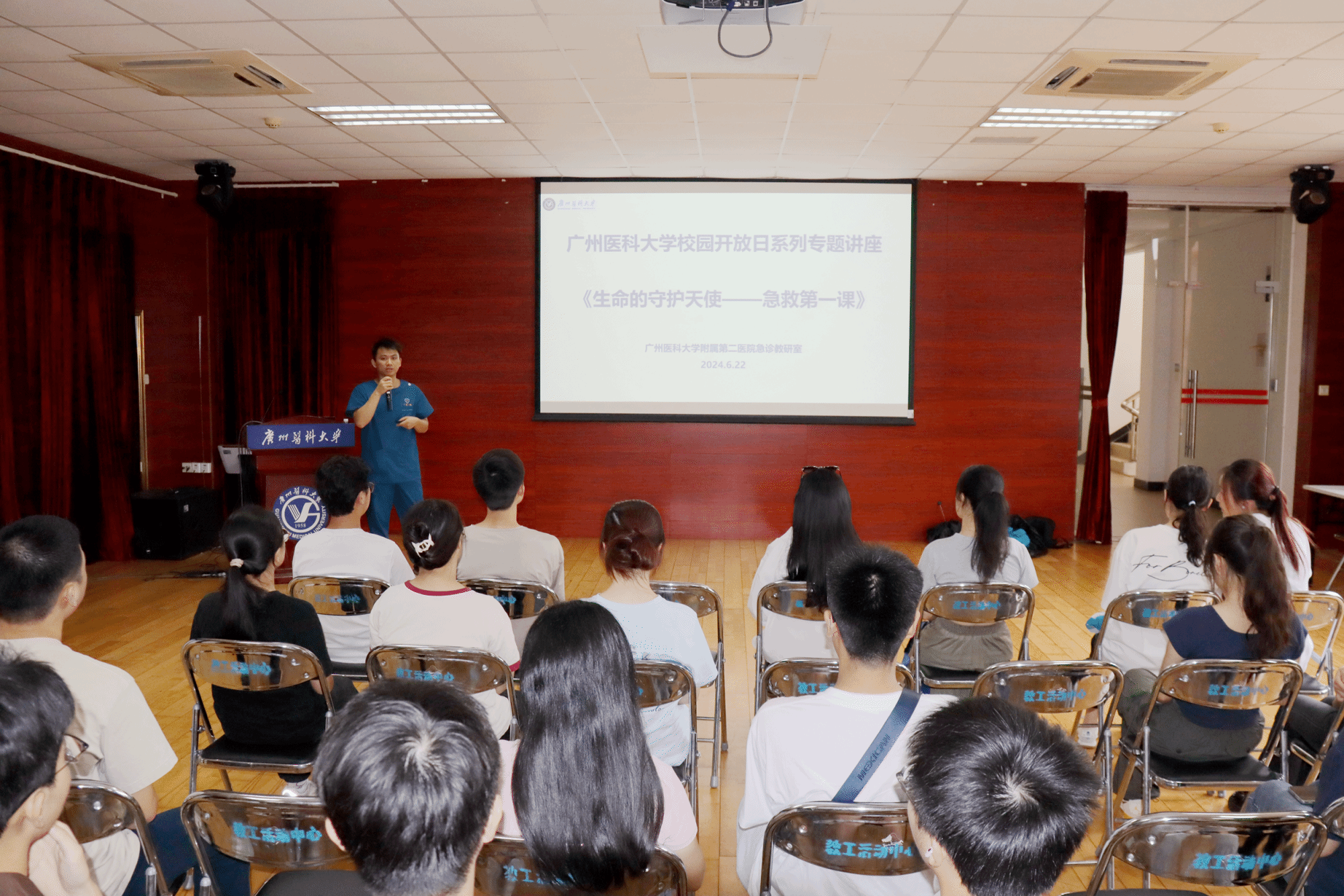 在礼堂2楼,急救第一课由广医各附属医院的急诊科专业医生授课,提供急救应用场景模拟,考生和家长现场学习急救知识和技能。