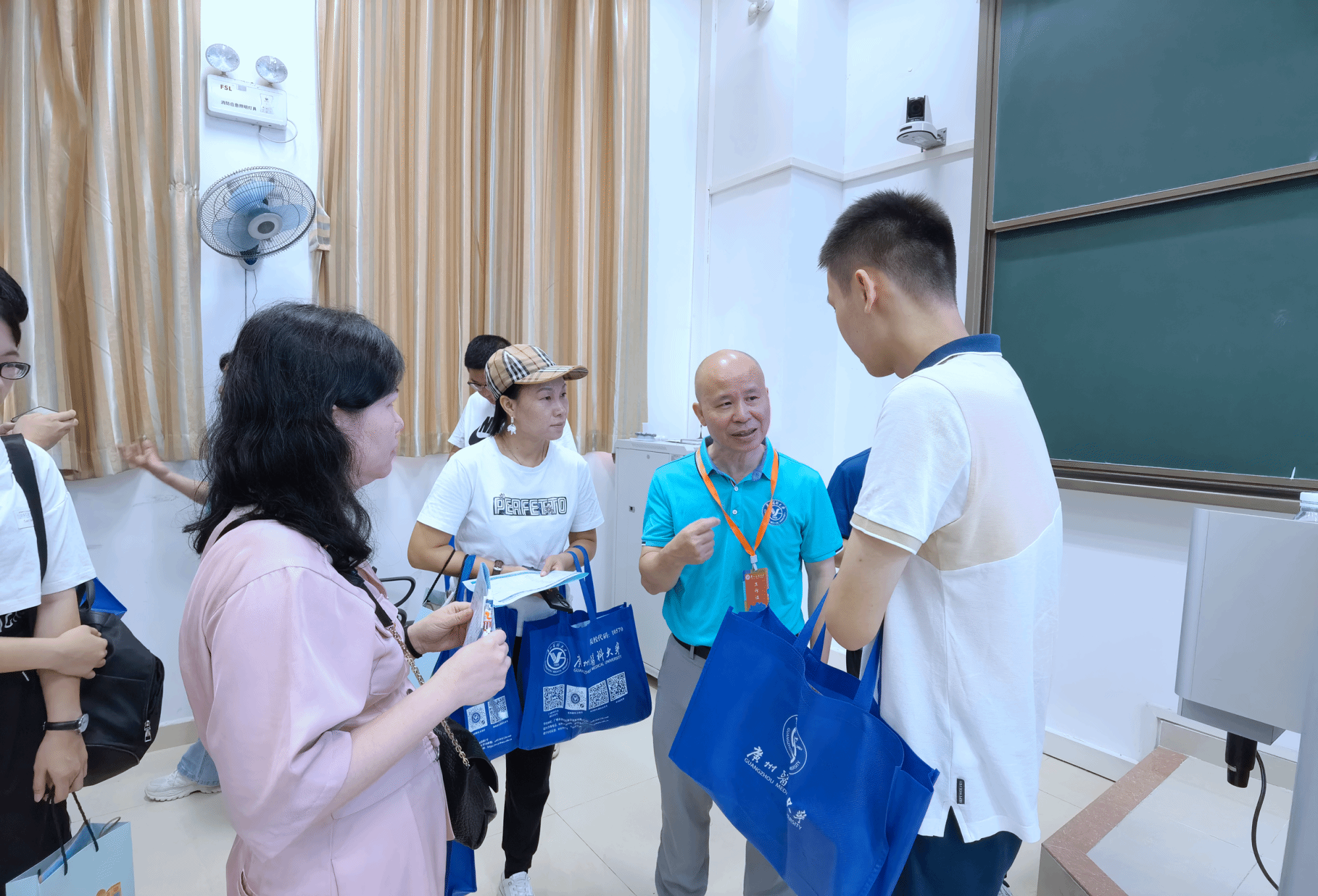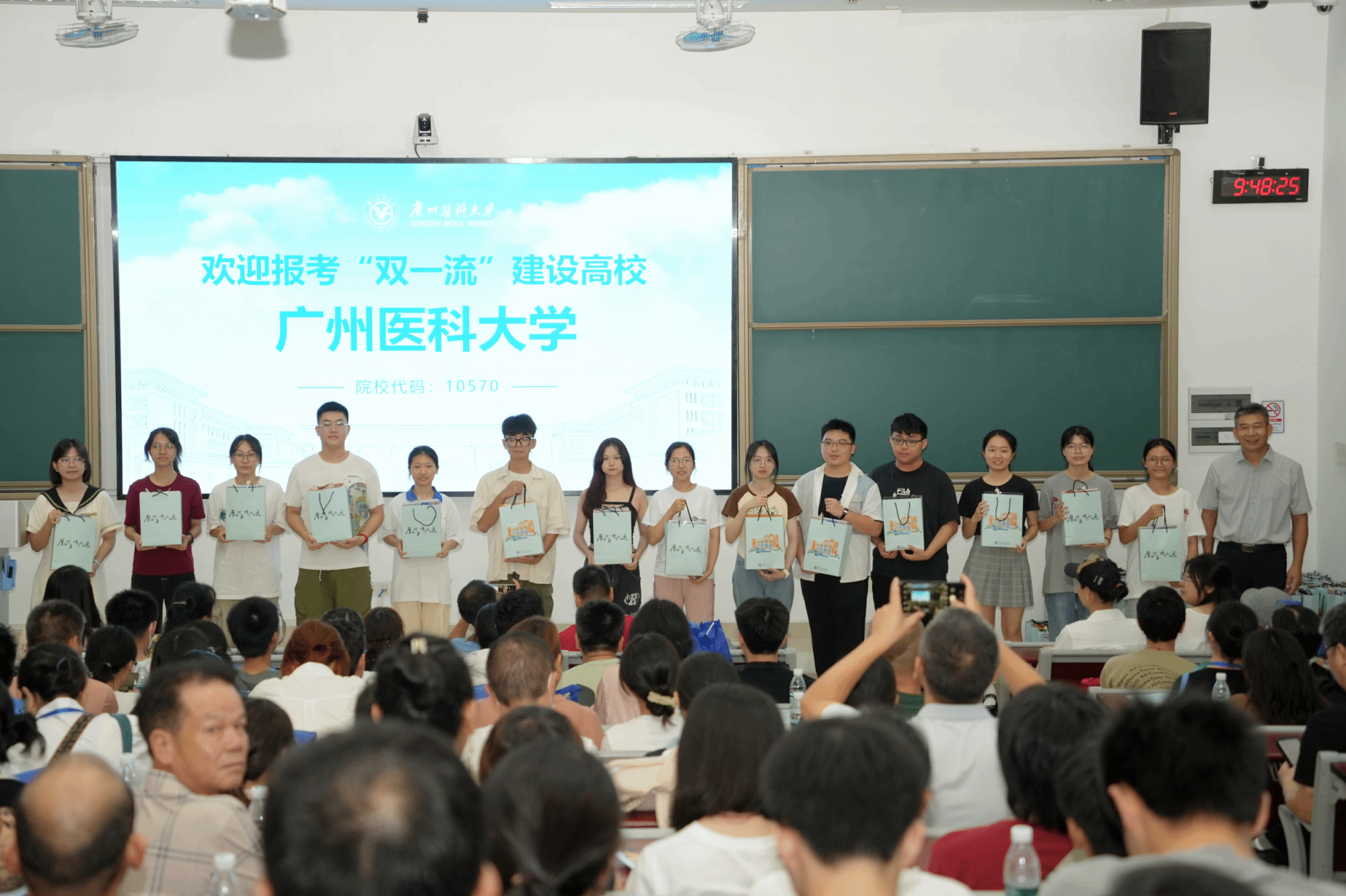 招生宣讲与咨询会在博学楼召开,副校长周麟致欢迎辞并为来访中学师生代表赠送学校文创纪念品。他表示,我们热忱欢迎同学们报考广医,广医将提供全面优质的教育服务,努力将孩子们培养成具有社会责任感、创新精神和实践能力的高质量拔尖创新人才,更好地为地方经济、社会、教育和文化建设服务。