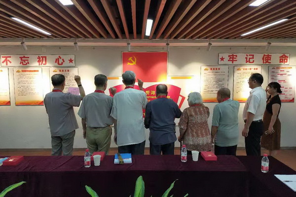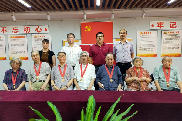一枚枚金光闪闪的纪念章映照着一颗颗滚烫的初心。老党员们慷慨激昂地重温入党誓词,回顾入党初心,追忆峥嵘岁月,回顾奋斗历史,讴歌党的丰功伟绩,抒发对日新月异新生活的赞叹,表达对党的无限热爱、感恩和赞美之情。他们纷纷表示:“加入中国共产党是我们一生中最骄傲、自豪和难忘的事,虽然现在年纪大了,但我们都希望克服困难,与年轻同志一起,共同纪念这个意义非凡的日子、难忘的时刻。今天上午,我们怀着无比激动的心情观看了庆祝中国共产党成立100周年大会,深深为祖国的发展感到无比自豪,对自己是一名共产党员感到无上荣光。没有共产党就没有新中国,更没有我们今天幸福的生活!”他们还特别感谢学校党委对他们的关心和重视,与他们共同庆祝党的百年华诞,在这个有着特殊意义的日子为他们举办了一场隆重而庄严的颁发纪念章仪式,让他们适时收获这份殊荣和喜悦。他们表示定会好好珍惜荣誉,不忘初心、牢记入党誓词,永远听党话、坚定不移跟党走,不辜负组织的期望和关怀,力所能及地发挥余热,用实际行动践行共产党员的责任与使命。
