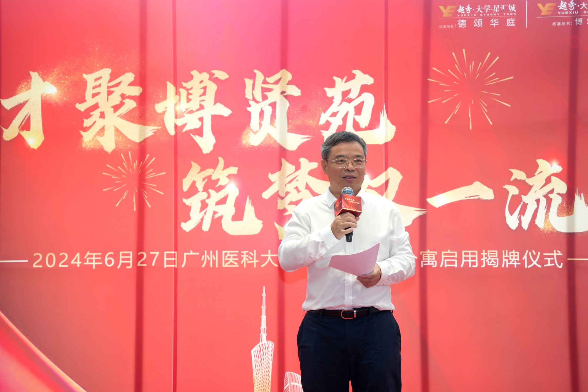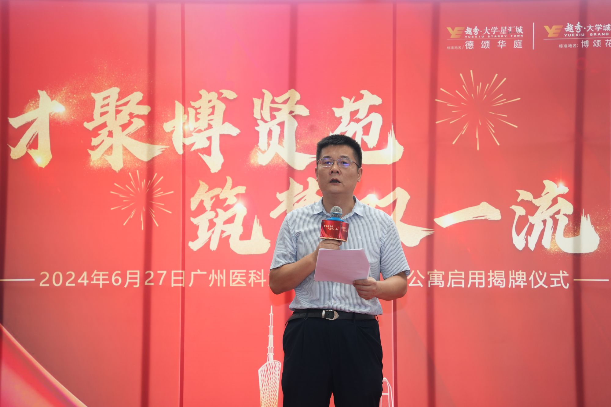 学校党委书记唐小平致辞中指出,学校始终坚持“人才兴校”发展战略,强化高层次人才引培力度,着力提升师资队伍建设水平。学校将安居乐业作为引才留才的重要抓手,落细落实人才公寓等多项服务保障措施,他要求各职能部门高度重视人才队伍的实际需求,全力保障他们的工作和生活,解决他们的后顾之忧。也希望入住人才公寓的各位同事立足广医、扎根广医、服务广医,兢兢业业、恪尽职守、不计得失,为学校高质量发展作出更大贡献。