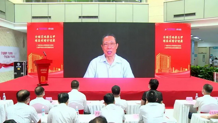 “获评三甲医院不是终点,而是医院发展的新起点。”“共和国勋章”获得者钟南山院士通过视频方式寄语附五院。目前,医院第一期药物研究的平台,已经纳入了呼吸疾病国家重点实验室等科研平台,医院将朝着研究、医疗、临床并重的方向继续发展。钟院士希望医院未来不断提高医疗服务水平和质量,继续为健康中国贡献力量。