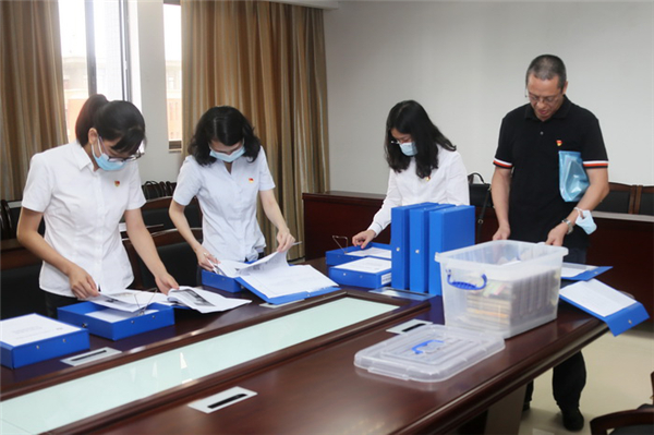 指导组成员查看ac米兰开展党史学习教育相关材料