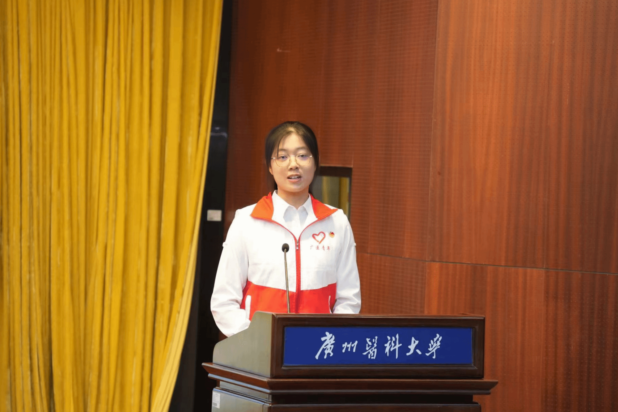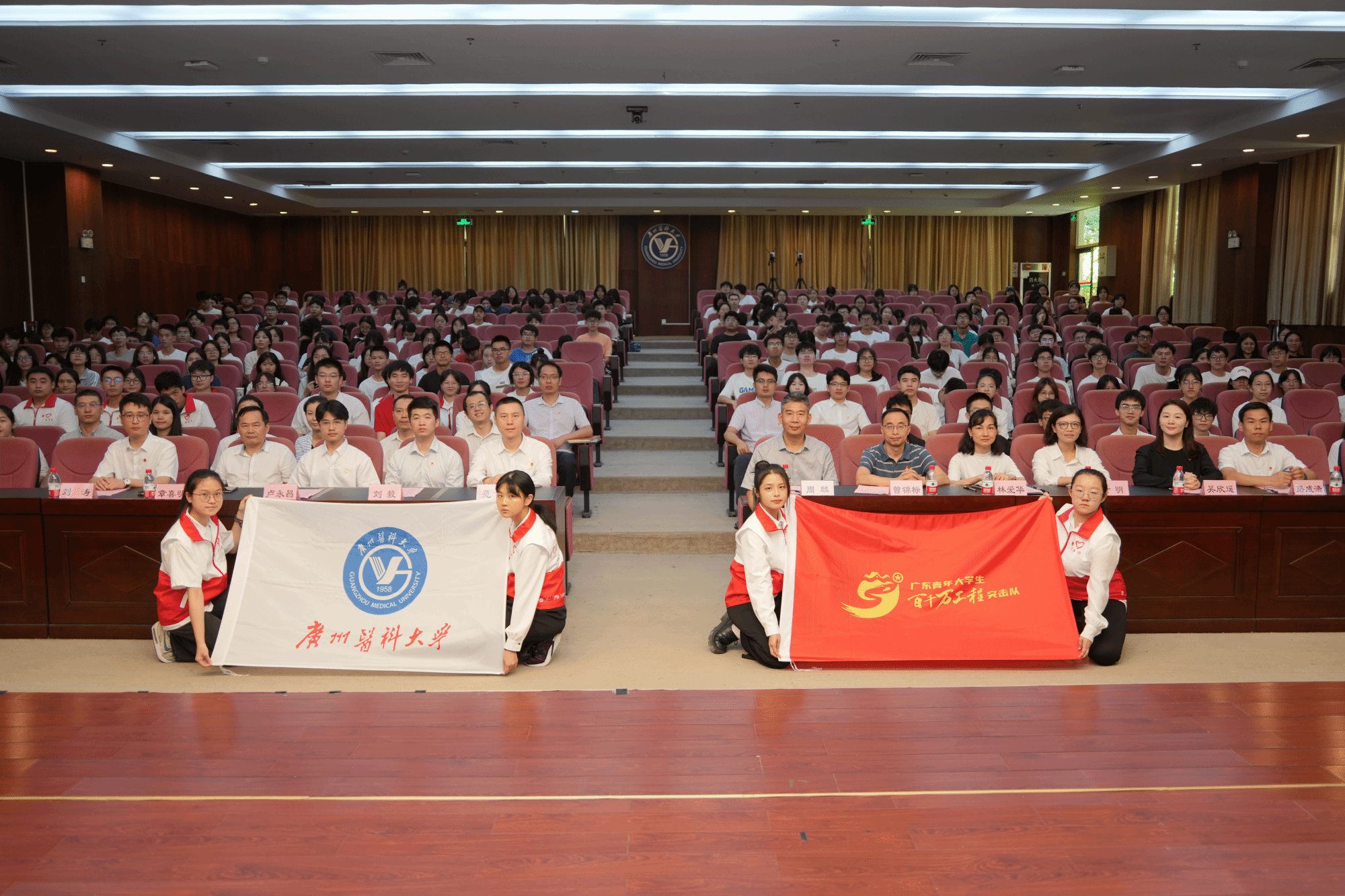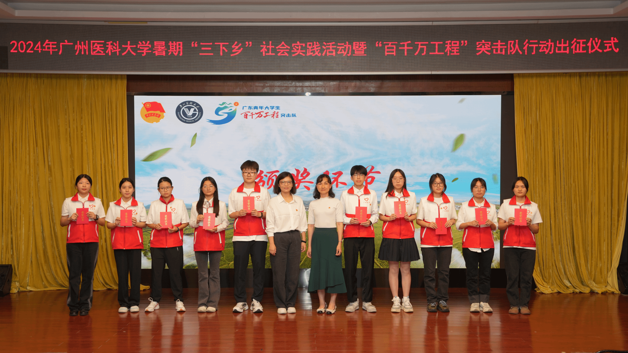 2024年ac米兰官方网站“百千万工程”突击队行动学生代表吴依然同学从团广东省委副书记范春手中接过旗帜,象征着全校82支“百千万工程”突击队集结完毕,广医青年即将于暑假期间奔赴各地,通过社会调研、健康课堂、瑶药创新、非遗传承、专业实践等方式助力广东高质量发展,奋力书写为中国式现代化挺膺担当的青春篇章。
