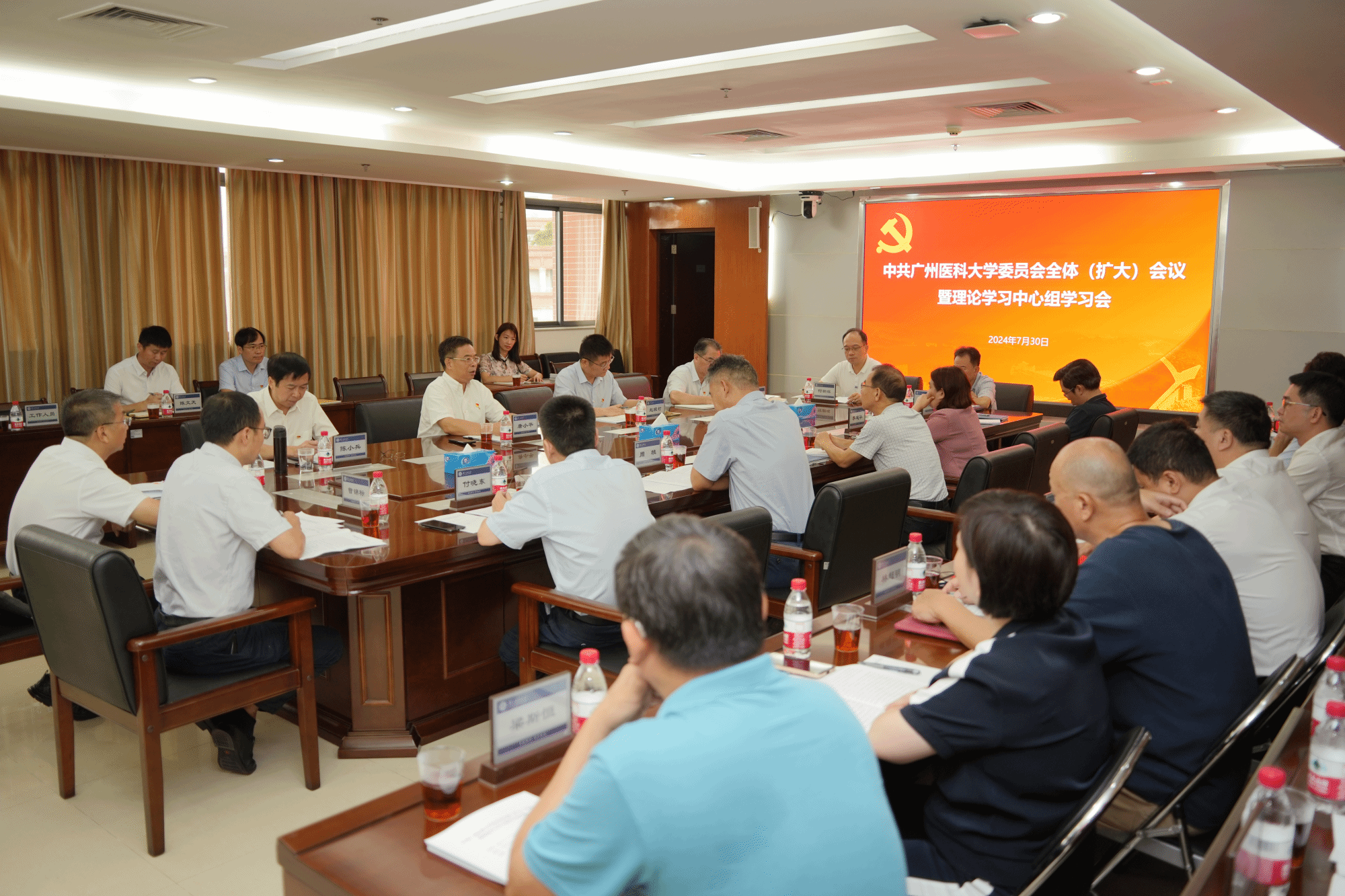 全体校领导,学校党委委员,相关部门、学院及附属医院负责人参加会议。