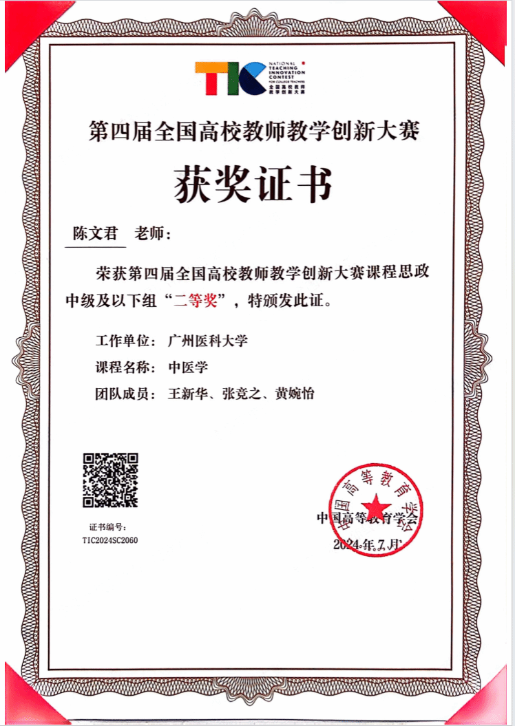 经过激烈角逐,第二临床学院陈文君老师《中医学》课程团队荣获课程思政赛道中级及以下组二等奖,护理学院苏茜副教授《母婴护理学》课程团队荣获新医科赛道副高组三等奖,刷新了ac米兰教师在国家级高水平教学竞赛中的最好成绩。