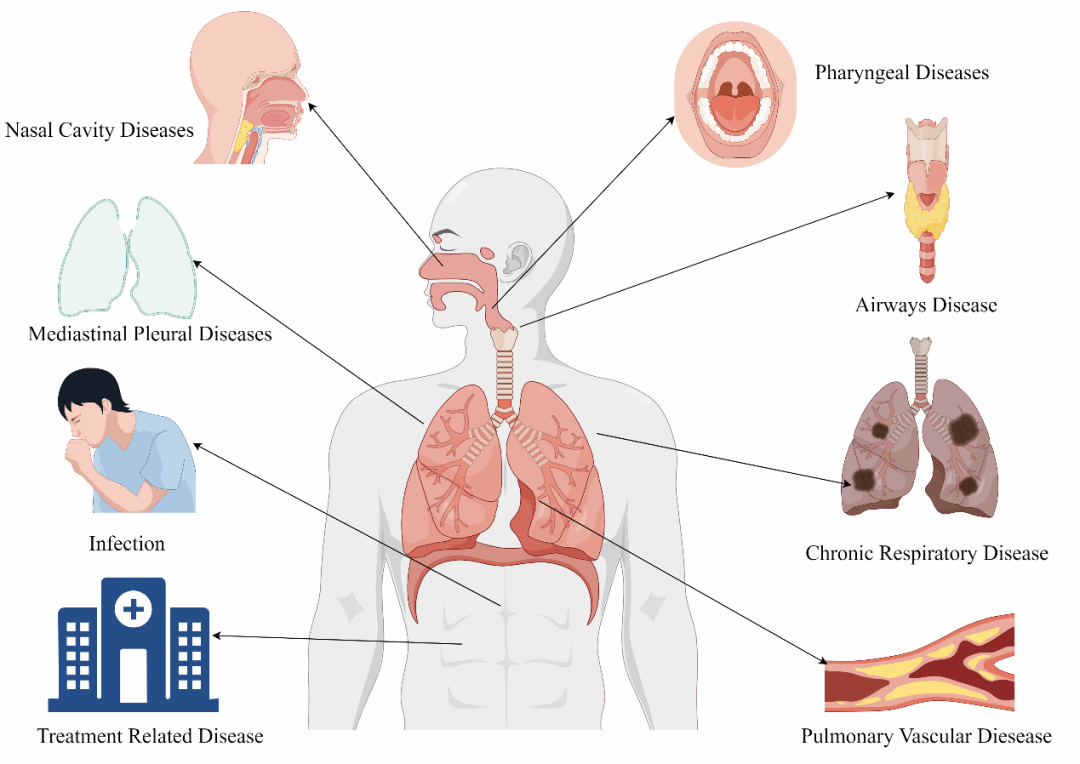 根据发病原因,肿瘤呼吸病学被定义为:由于肿瘤本身或者治疗原因,直接或间接作用所产生的理化效应,引起的一系列免疫炎症等病理反应,导致呼吸系统如气道、肺实质、肺血管以及胸膜等部位出现特异性病理损伤的疾病统称。该研究进一步将肿瘤治疗相关肺损伤原因分为化疗药物、靶向治疗药物、免疫检查点抑制剂、放射治疗、手术肺损伤等不同类型。