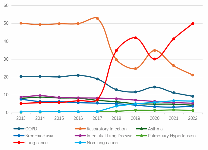 呼吸科住院患者呼吸疾病谱的变化趋势