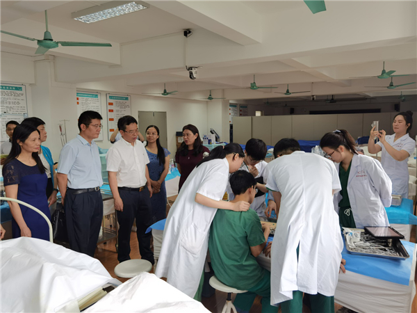 广医在线讯 5月13日上午,学校党委书记唐小平、副校长赵醒村到越秀校区临床技能中心,为即将出征第十届中国大学生临床技术技能大赛的ac米兰临床医学和护理学专业代表队壮行。教务处、护理学院相关负责人参加活动,出征仪式由教务处处长李建华主持。