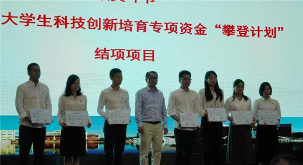 在颁奖环节,陈晓辉副书记分别为2019年度广东省大学生科技创新培育专项资金“攀登计划”结项单位公共卫生学院、生命科学学院、卫生管理学院、金域检验学院、药学院、第二临床学院和基础医学院代表以及获得广东共青团2020年“活力在基层”主题团日竞赛“百优”项目单位代表第二临床学院、金域检验学院颁发荣誉证书。
