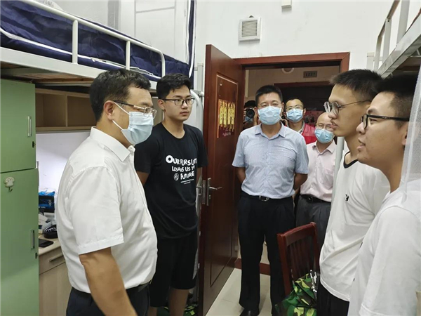 学校党委书记唐小平、副校长赵醒村以及有关部门负责人等到迎新服务点与新生、工作人员交流,询问学生情况,又到宿舍看望慰问新生,勉励他们珍惜大学时光,努力成长成才。