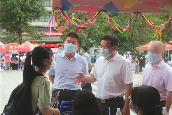 学校党委书记唐小平、副校长赵醒村等看望新生