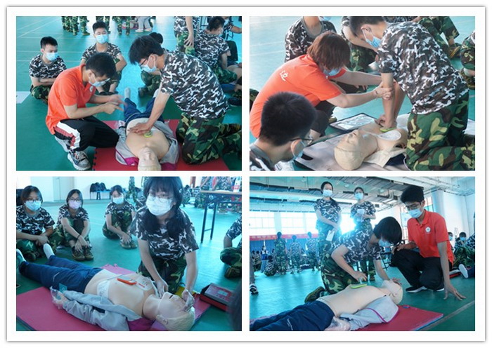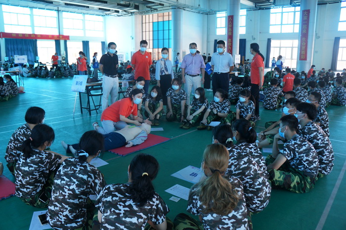 在操作培训环节,2200多名新生分成110批次,每组配模型2个、教师1名,重点围绕胸外心脏按压、开放气道、人工通气、早期除颤、AED的使用等内容,培训老师先作示范,学生逐一进行反复训练,老师手把手指导急救技能。培训之后进入考核环节,确保每位学生都能熟练掌握心肺复苏等急救技能。
