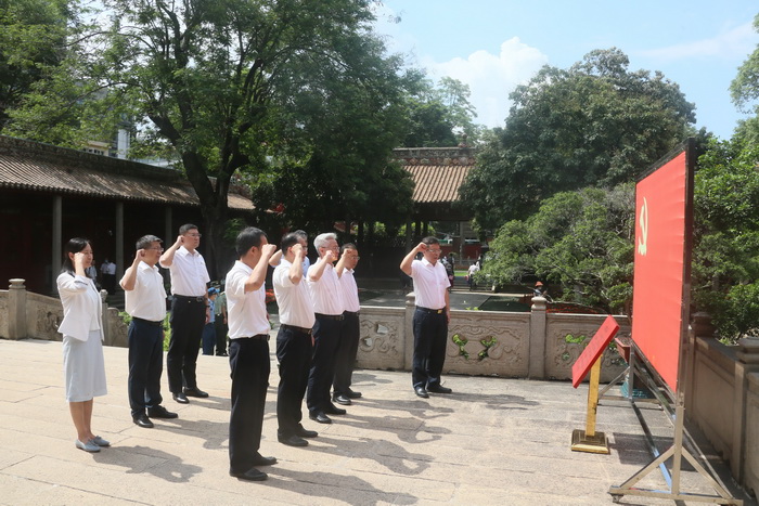 在中国共产党倡议下,从1924年到1926年,广东革命政权在广州先后举办了六届农民运动讲习所。在共产党人彭湃、罗绮园、阮啸仙、谭植棠、毛泽东相继主持下,农讲所共培养了700多名农运骨干。学员毕业后奔赴各地,点燃了农民运动的星星之火。学校党委理论学习中心组一行参观了农讲所历史陈列展览,了解农讲所举办的历史背景和伟大意义,感受革命先辈崇高的理想信念。参观过程中,学校党委书记唐小平带领全体人员面对党旗重温入党誓词。