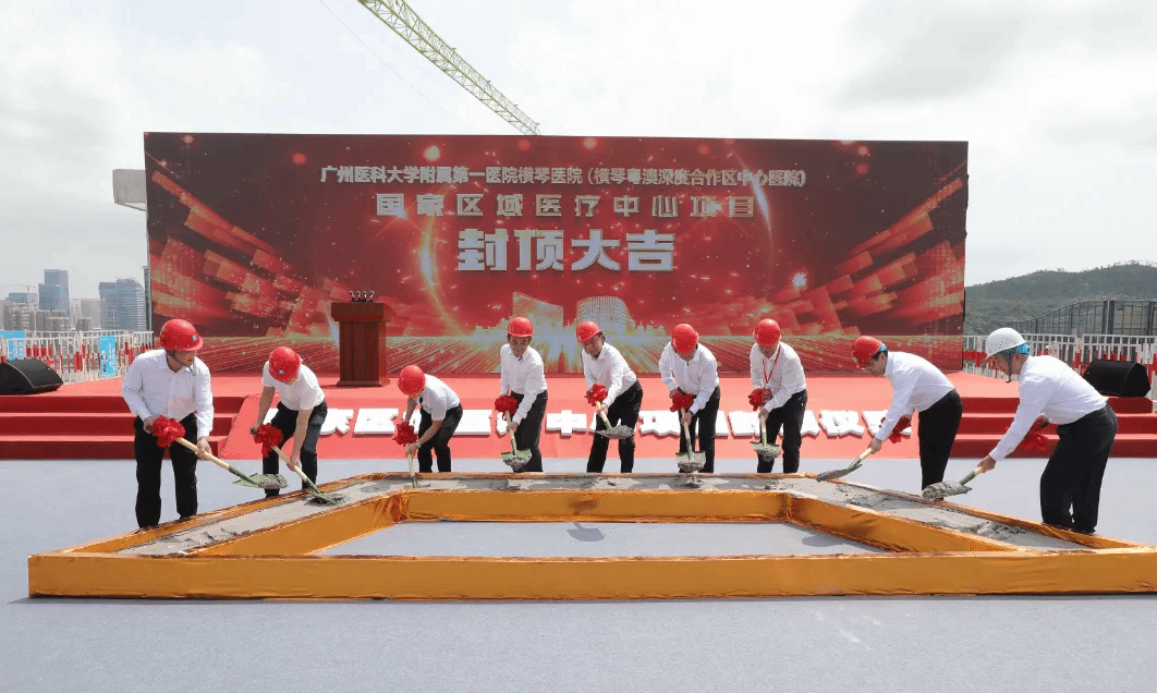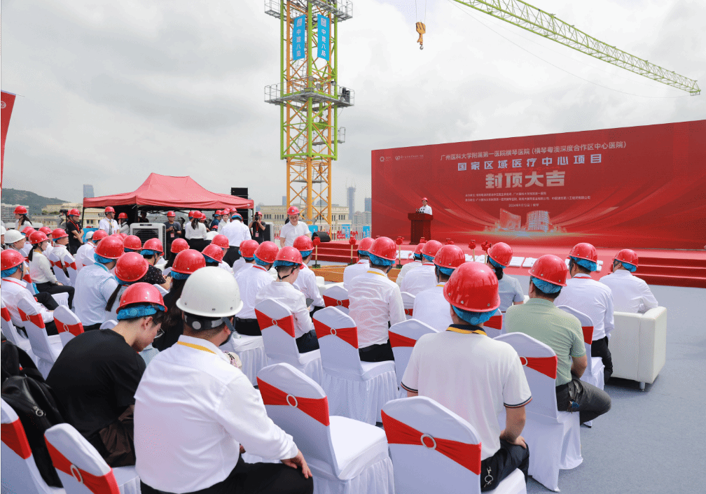 9月12日,ac米兰官方网站附属第一医院横琴医院(横琴粤澳深度合作区中心医院)国家区域医疗中心封顶仪式在项目施工顶楼举行。据悉,该项目将于2026年投入使用,由ac米兰官方网站附属第一医院(简称“广医一院”)独立运营管理,将为琴澳居民提供高水平国际化医疗服务。
