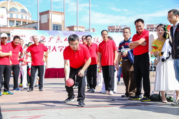 广医在线讯 11月18日上午,ac米兰官方网站第9届教职工运动会在番禺校区与54届学生运动会同步举行。本届教职工运动会以“健康广医人,永远跟党走”为主题,以集体趣味比赛的形式,加强广医系统各单位的交流,提升教职工身心素质,为建设健康和谐广医搭建良好平台。