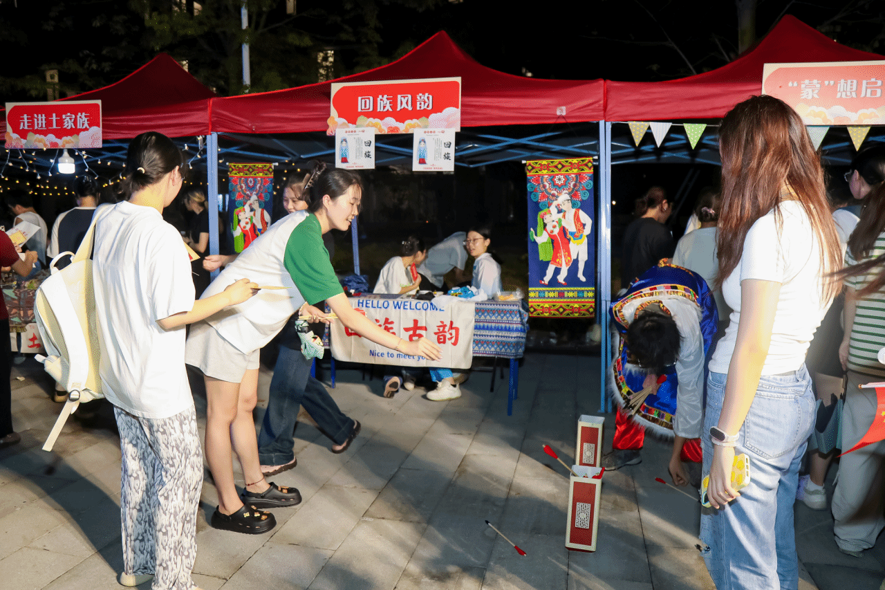 夜幕低垂,我们的校园被一场别开生面的市集点亮。这不仅仅是一场交游的盛会,更是一次穿越时空的文化之旅。我们通过一系列精心策划的摊位,展示中华文化的深厚底蕴,同时注入现代生活的新鲜活力。
