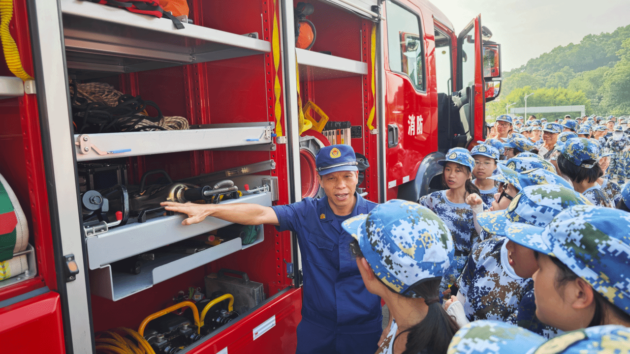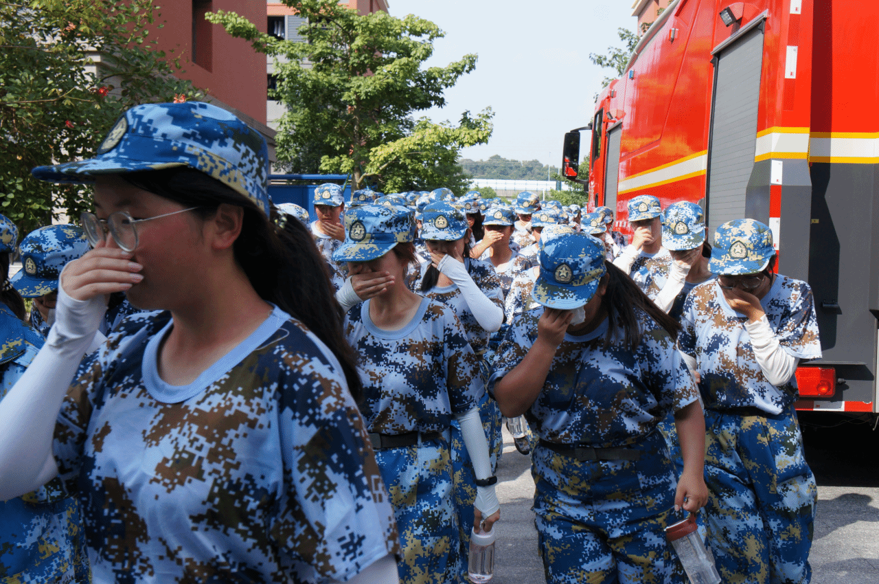 军训期间,新生还进行了消防演练,学习防火、灭火知识和技能。