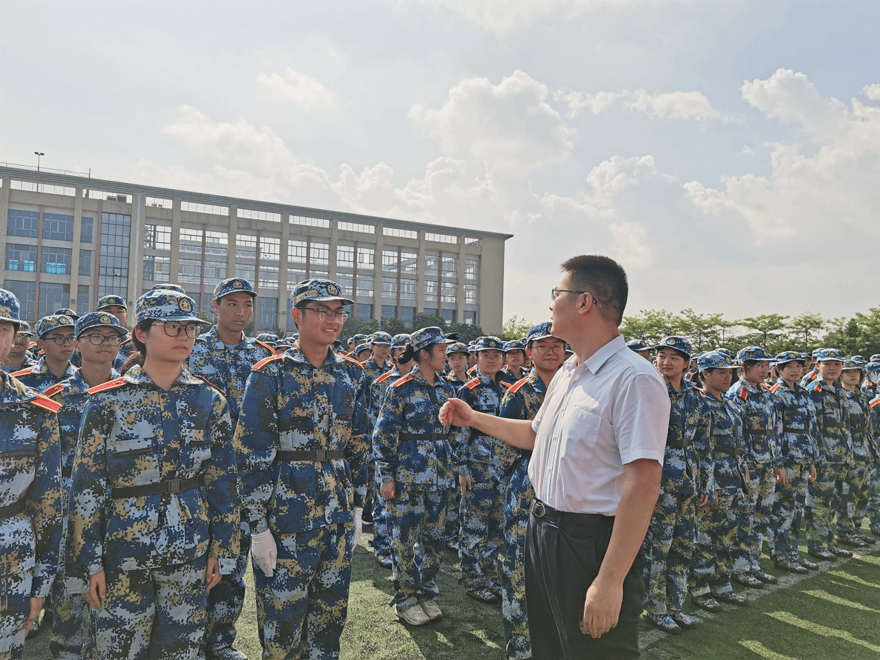 副校长付晓东在讲话中向承训单位番禺区人民武装部致以敬意,向全体教官和有关老师表示感谢,向圆满完成军训任务的全体同学表示祝贺。他对同学们提出三点希望:
