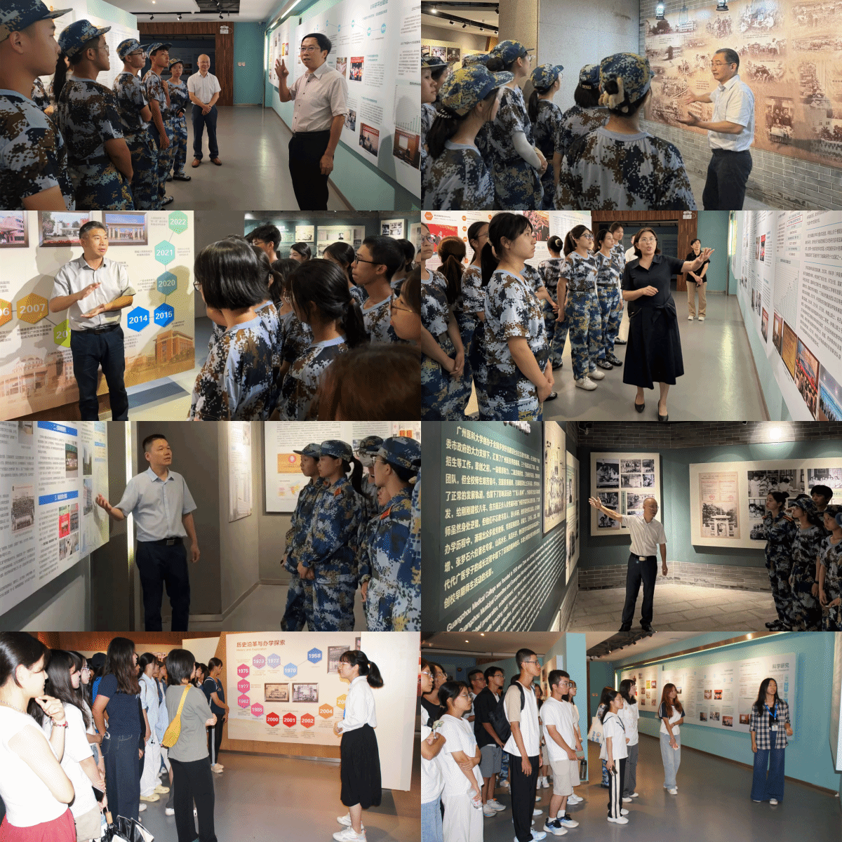军训期间,新生分批前往校史展览馆参观,了解广医发展历程,体悟广医人精神和南山精神。学校党委书记唐小平、校长赵醒村等校领导、学生工作处负责人和学生讲解员为新生讲解学校发展史。