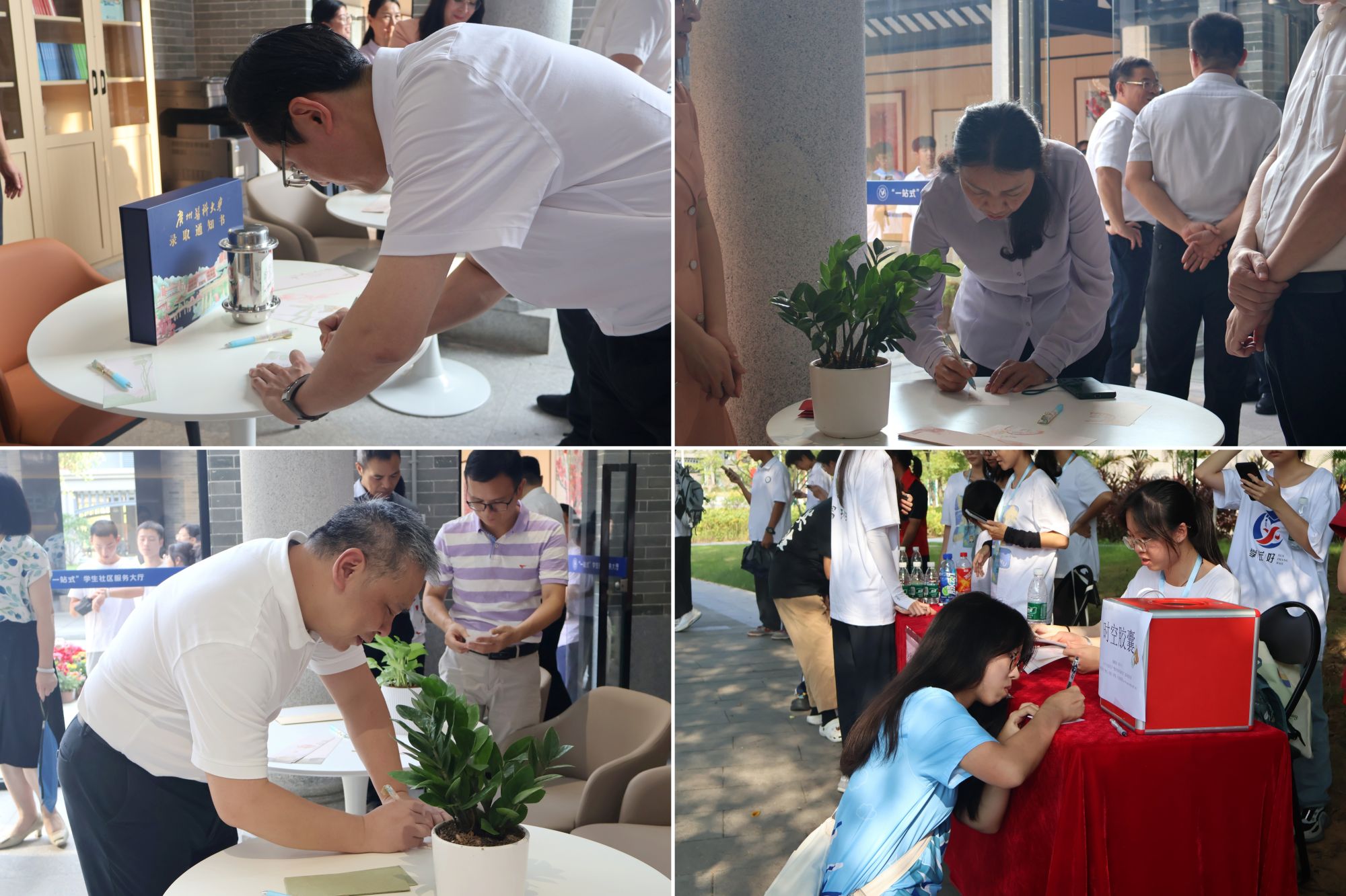 学校党委书记唐小平、校长赵醒村、副校长周麟与相关部门负责人共同为“一站式”学生社区服务大厅揭牌,全体辅导员和各学院学生代表参与仪式。仪式由学生工作处处长陈伟民主持。