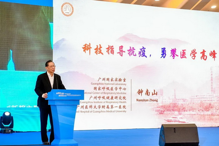 钟南山院士在主旨演讲中分析了当前国内外疫情防控形势,讲述了全国民众齐心抗疫背后的故事,鼓励广大青年科技工作者深怀爱国之心、砥砺报国之志,主动担负起党和人民赋予的使命责任,用更大的担当作为助推国家医疗卫生科技事业发展,不断为国家科技进步作出新的更大贡献。