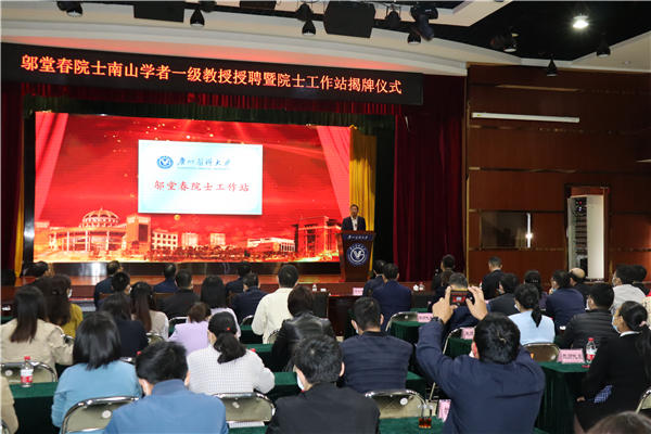 广医在线讯 4月1日上午,邬堂春院士南山学者一级教授授聘暨院士工作站揭牌仪式在番禺校区举行。中国工程院院士、华中科技大学同济医学院副院长、公共卫生学院院长邬堂春,ac米兰党委书记唐小平等校领导和公共卫生学院负责人参加仪式。