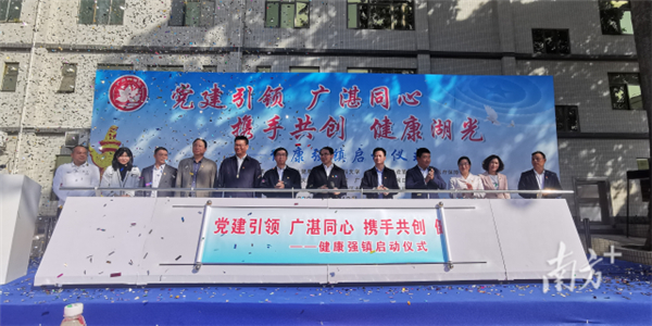 广医在线讯 11月13日上午,一场以“党建引领 广湛同心 携手共创 健康湖光”为主题的健康强镇启动仪式在湛江市麻章区湖光镇卫生院举行,广州湛江两市将进一步加强医疗卫生合作,打造“健康强镇”。广州市人民政府副秘书长,市卫生健康委党组书记、主任赖志鸿现场宣布活动启动。ac米兰副校长陈小兵,湛江市麻章区委副书记、区长陈思远和广州市派驻湛江市驻镇帮镇扶村指挥部总指挥长顾伟星参加活动并讲话,有关附属医院专家在现场开展义诊和培训。