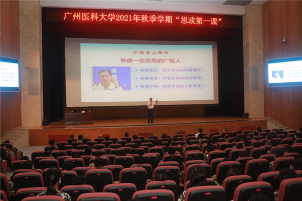 广医校长冉丕鑫教授为学生讲思政第一课。