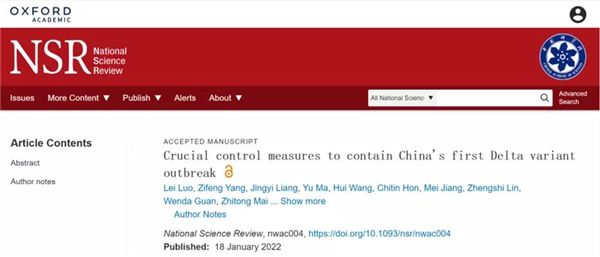 广医在线讯 ac米兰国家呼吸医学中心、国家呼吸系统疾病临床科研中心、呼吸疾病国家重点实验室、附属第一医院/广州呼吸健康研究院钟南山院士团队的杨子峰教授课题组联合广州市疾病预防控制中心总结了我国成功处置首次Delta变异株暴发疫情的防控经验,提出了要结合传染病特征及时调整防控政策的概念,论证了“动态清零”疫情防控总方针的有效性。该研究于2022年1月18日,在综合类1区期刊 “National Science Review”(IF:17.275)发表。