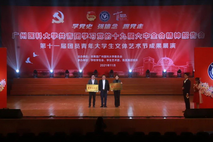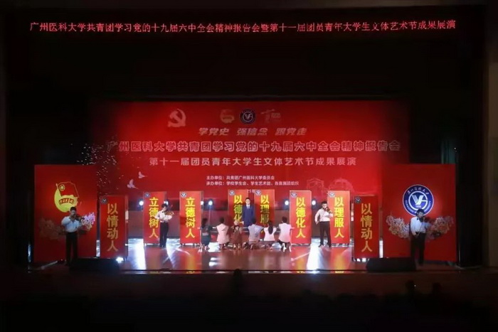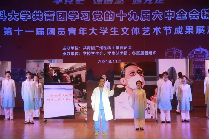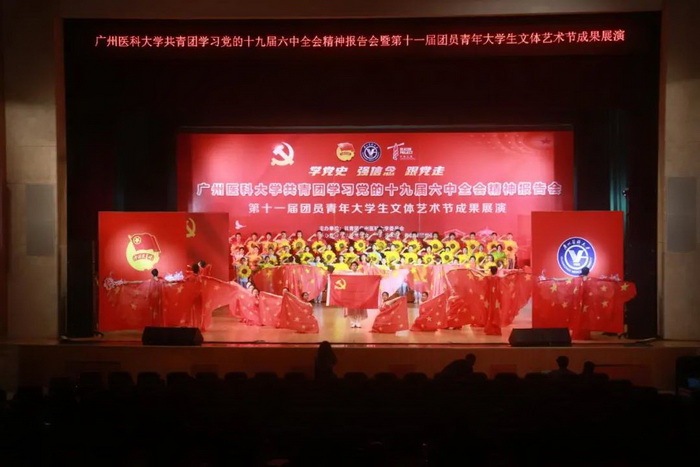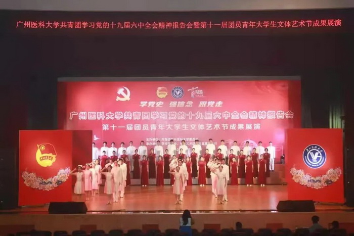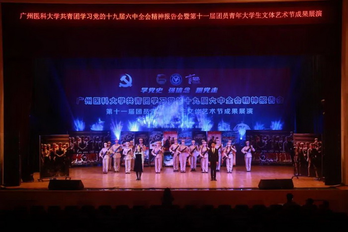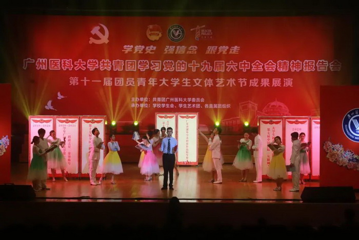 随后,由ac米兰学生艺术团、各附属医院团员青年代表献上的第十一届团员青年大学生文体艺术节成果展演开始。展演分为“青春心向党”“广医青年说”“奋斗正当时”三个篇章。