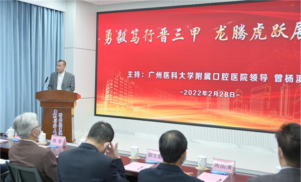 市卫健委党组成员、一级调研员胡文魁指出,市卫健委积极推进公共卫生和基本医疗服务各项工作,不断推动医院高质量发展。晋级“三甲”是医院奋进的里程碑,更是发展提升的新起点。希望口腔医院再接再厉,在管理上创新,在业务上求精,努力打造成为群众放心、职工满意、社会认可的一流医院,为保障人民群众身体健康、提升广州市整体医疗水平作出新的更大的贡献。