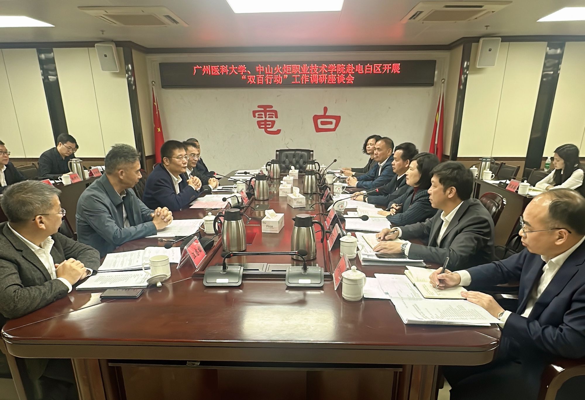 为推进“双百行动”第二批校地合作,11月29日至30日,校长赵醒村、副校长周麟,以及办公室、组织部、医院管理处、工会、附属第一医院相关负责人等赴茂名市电白区开展“双百行动”工作调研。