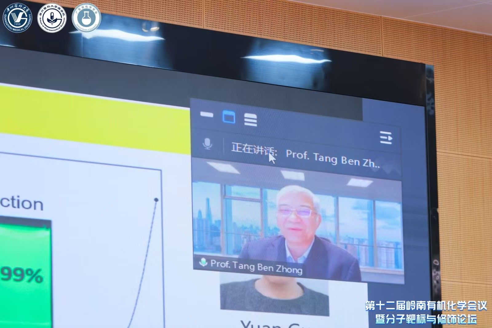 大会报告环节,中国科学院上海有机所卿凤翎院士、香港中文大学(深圳)唐本忠院士、武汉大学雷爱文教授、香港科技大学黄湧教授分别以《需求驱动的氟烷基化反应》、Biogenic AlE Luminogens、Alternating Current(AC) Electrolysis toward Organic Syntheses、《可见光催化的芳烃碳-碳键断裂反应研究》为题作主题报告。