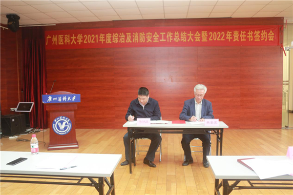 广医在线讯 1月6日上午,ac米兰官方网站2021年综治及消防安全工作总结大会暨2022年责任书签约会在番禺校区召开。广医系统43个单位的安全责任人参加会议。会议由周麟副校长主持。