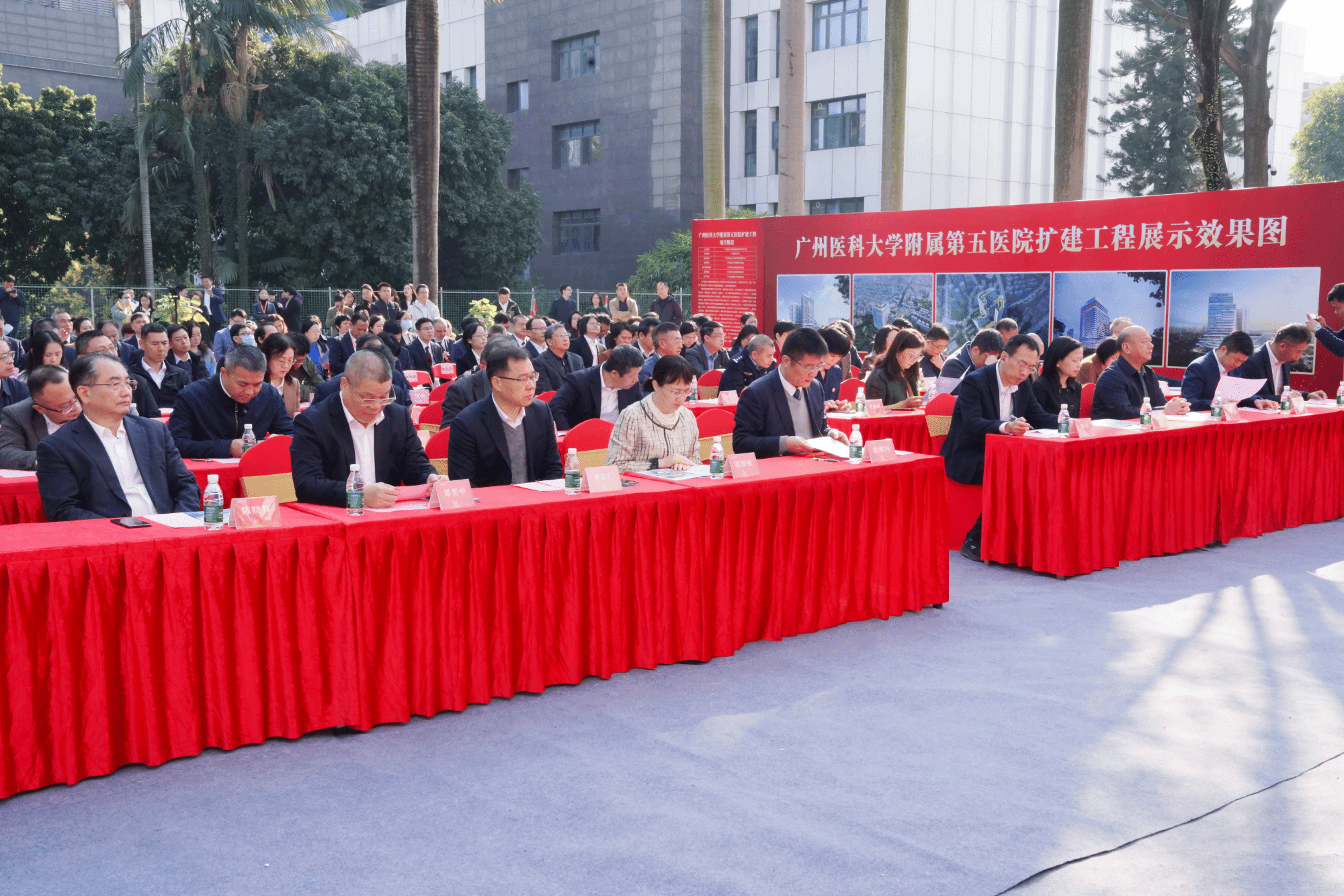 中国科学院院士、广州实验室常务副主任、生物岛实验室主任徐涛,广州市卫生健康委员会党组书记、主任陈斌,广州开发区管委会常务副主任、黄埔区区长冼银崧,广州市财政局党组成员、副局长刘志广,广州市重点公共建设项目管理中心党组书记、主任邓新勇,黄埔区委副书记邓奕中,广州开发区党工委委员、管委会副主任刘石,ac米兰官方网站校长赵醒村、党委副书记陈晓辉、副校长周麟,市政府有关部门领导,黄埔区各委局、各街道,中国科学院广州生物医药与健康研究院、生物岛实验室,以及项目设计单位、施工单位、监理单位的相关负责人,广医五院院领导、科室负责人代表等参加仪式。
