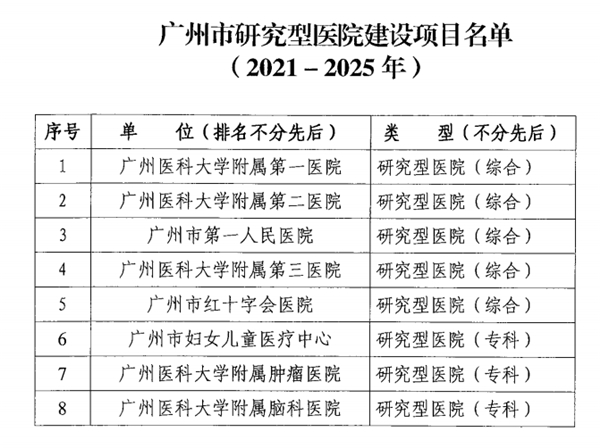 广医在线讯 为加快广州市医疗高地建设步伐,根据《广州市加快医疗高地建设工作方案(2020-2025年)》,广州市卫生健康委组织了广州市研究型医院评审工作,经过多轮材料和现场评审,广州市共有8家医院入选建设名单。ac米兰附属第一医院、附属第二医院、附属第三医院入选广州市研究型综合医院建设名单;附属肿瘤医院及附属脑科医院入选广州市研究型专科医院建设名单。