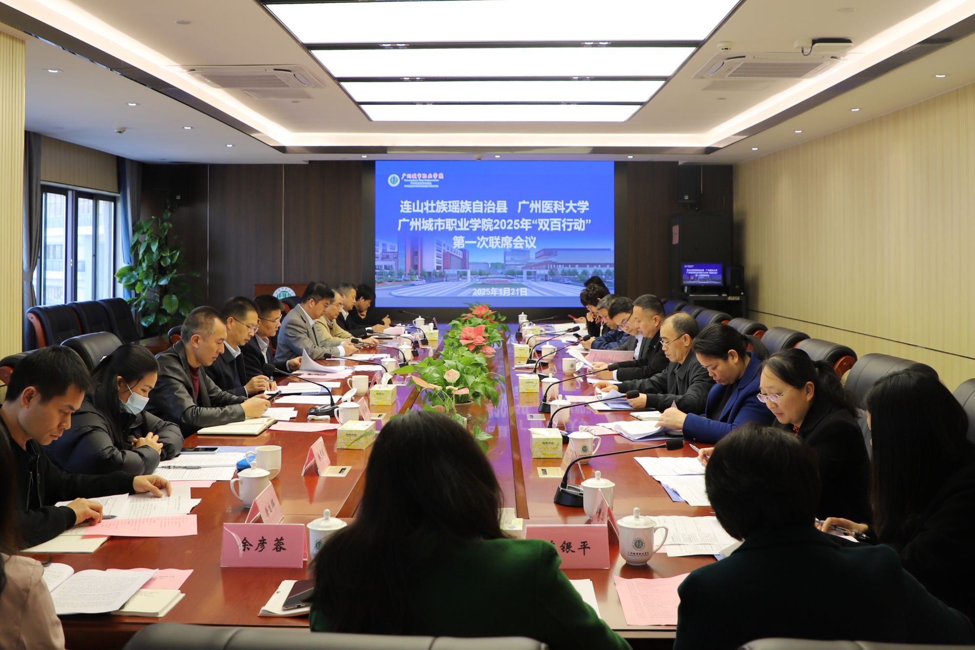 1月21日,学校校长赵醒村、党委副书记陈晓辉,以及医院管理处、校长办公室、教师教学发展与研究中心相关负责人等赴广州城市职业学院(以下简称城职院)参加2025年连山壮族瑶族自治县、ac米兰官方网站、广州城市职业学院“双百行动”第一次联席会议。